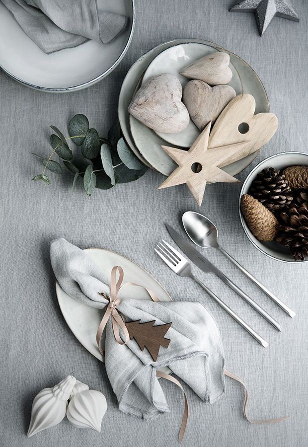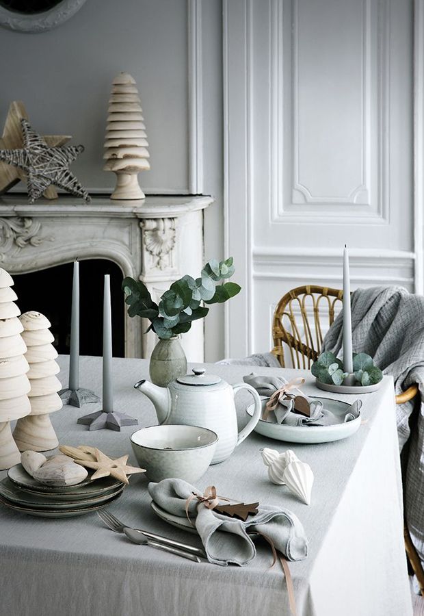 Claves. El blanco, mezclado con madera y pelo, y la planta clave de estas Navidades que a mi me ha vuelto loca, el eucalipto.