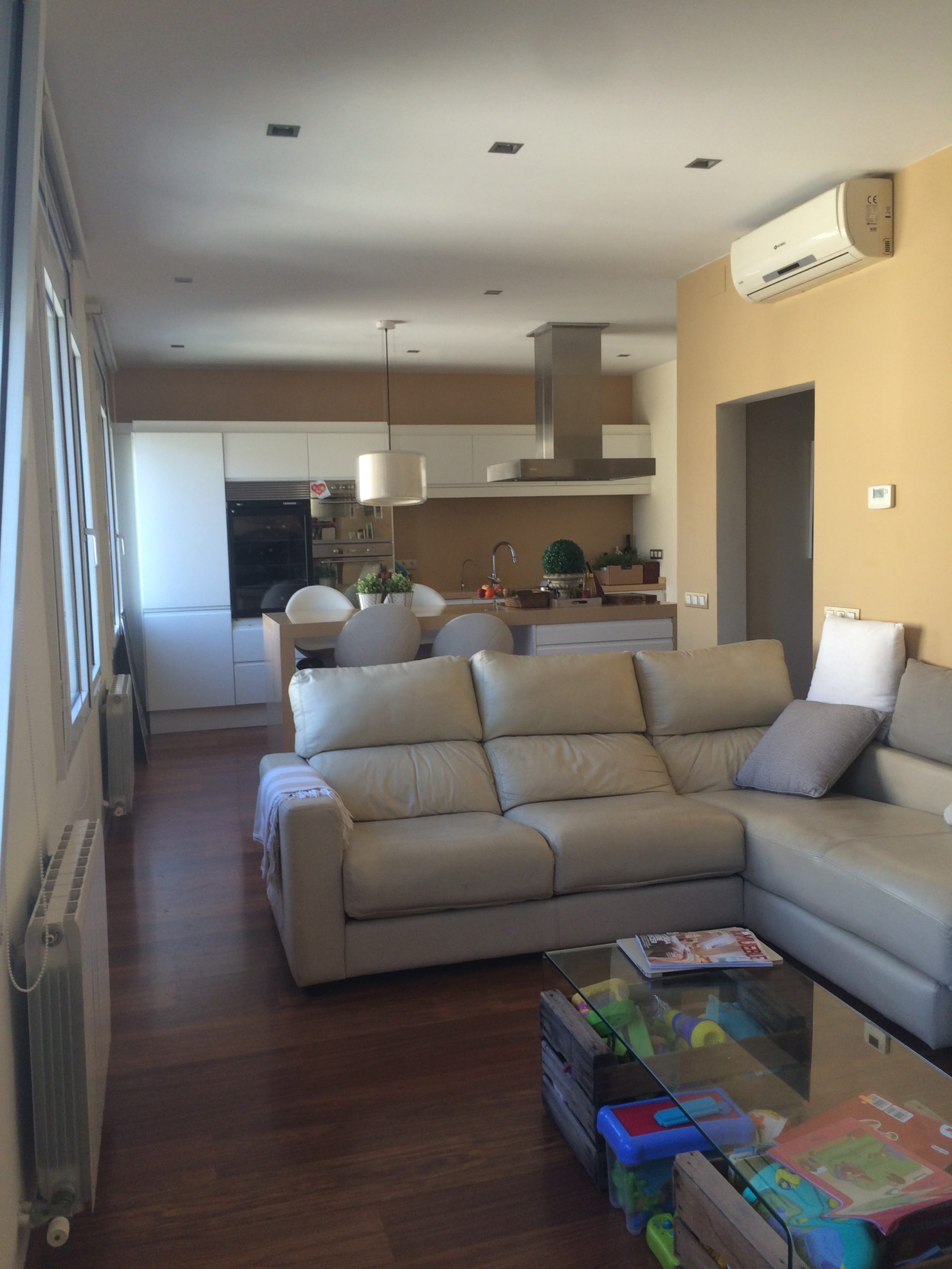 En cuanto recibimos las fotografías, supimos que el exceso de coordinación en la gama cromática era el principal problema a resolver, prácticamente todas las paredes y mobiliario, eran de los mismos tonos camel o piedra.