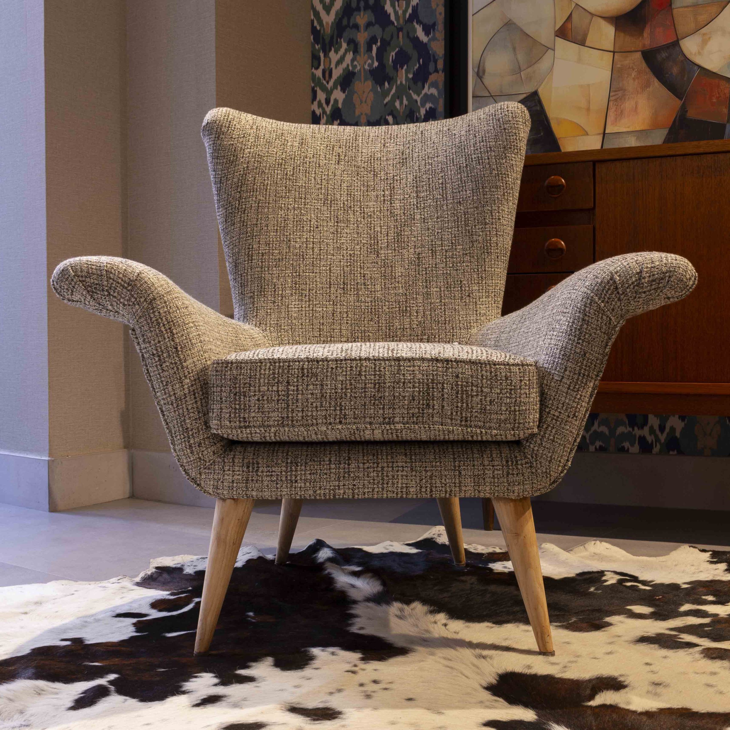 Diseño estilo “Butterfly” con respaldo envolvente y líneas orgánicas que evocan el confort y la elegancia del mid-century nórdico.